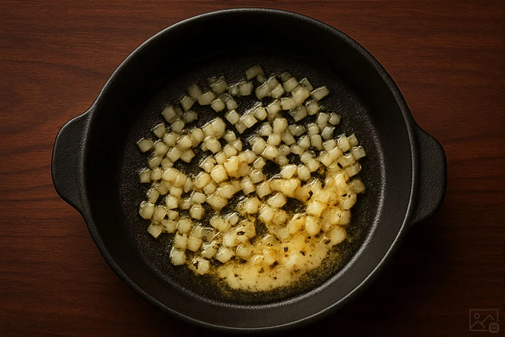 Die Champignons putzen und in Scheiben schneiden. Zwiebeln fein hacken.