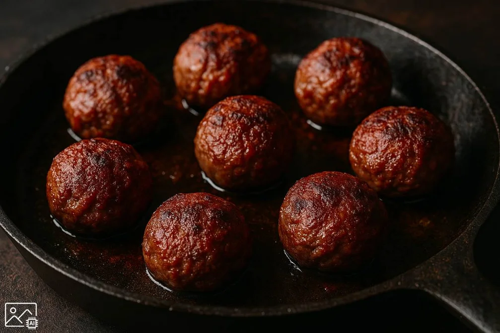 Mit angefeuchteten Händen kleine Bällchen formen (ca. golfballgroß). Auf ein mit Backpapier belegtes Blech setzen oder in eine leicht geölte Form geben. Im vorgeheizten Ofen bei 180 °C (Ober-/Unterhitze) ca. 25–30 Minuten garen. Alternativ: In einer gusseisernen Pfanne mit etwas Öl rundherum goldbraun braten.