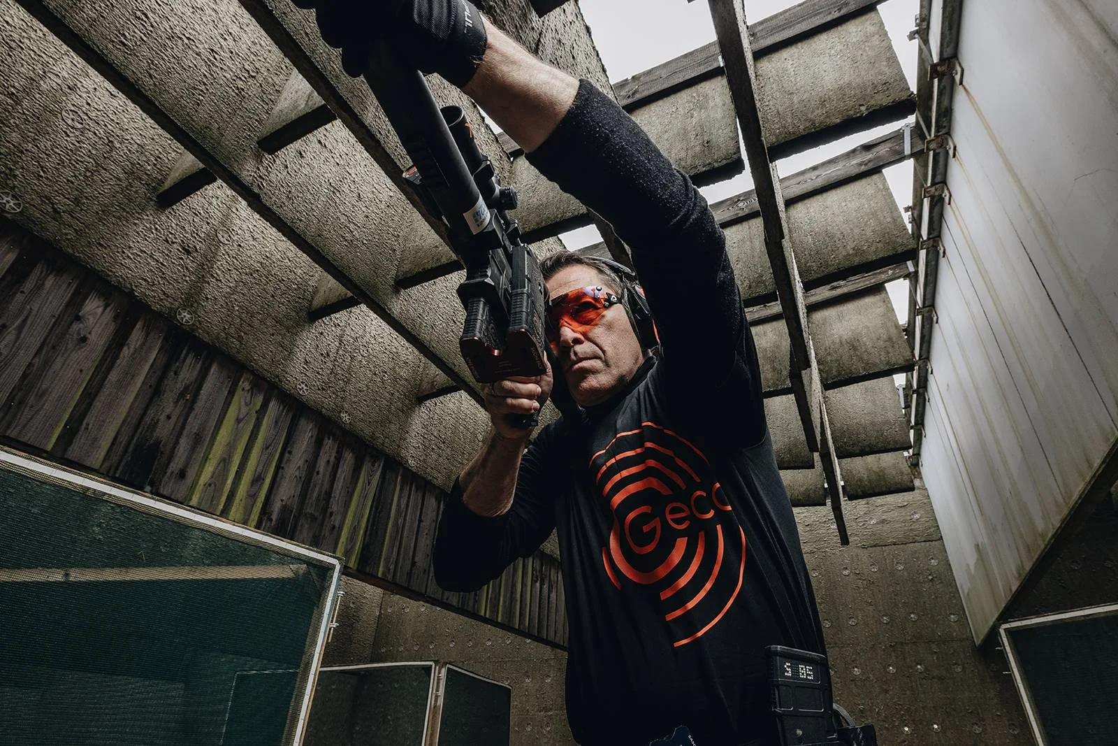 Im Training verfeuert er die GECO 9 mm Luger/124 Grains VM-Munition aus seinem S&W 929. In Wettkämpfen schießt er seine bewährte Handlaborierung, bestehend aus 4,0 Grains Reload Swiss RS12 und 139 Grains GECO VM-Geschoss. Das Projektil wurde leider aus dem Programm genommen und ist nicht mehr käuflich zu erwerben, so dass Sascha Back eine neue Handladung entwickeln wird. Ab und an widmet er sich auch dem Pistolenschießen und schwört dann auf seine STI 2011 Edge in .40 S&W, die er mit der GECO 180 Grains Fabrikmunition in diesem Kaliber füttert. In den Langwaffen-Disziplinen verwendet er Dynamic Arms Research DAR-15-Gewehre in .223 Remington (IPSC Rifle) sowie 3G-Sports 3G-TEC9- alias Quarter Circle 10-Karabiner in 9 mm Luger (IPSC PCC). In IPSC Rifle nutzt Sascha hauptsächlich die GECO .223 Rem. Target FMJ in 55 Grains. Im Training schießt er aber auch gerne die junge GECO 55 Grains DTX-Munition und nutzt ein Nordic Arms-AR-15-Kleinkaliber-Wechselsystem, das dann mit GECO .22 Semi Auto-Randfeuermunition betrieben wird. In Wettkämpfen packt der Topschütze im Zentralfeuerkaliber .223 Remington aber auch schon mal die RWS 77 Grains Elite Target Plus oder handgeladene Patronen mit dem 52 Grains RWS MJ-Geschoss, Reload Swiss RS40-Treibladungsmittel sowie GECO Small Rifle-Zündhütchen in die Magazine. In IPSC PCC trainiert Sascha mit der GECO 9 mm Luger/124 Grains VM-Munition und hat für Matches aber auch eine Handladung mit Reload Swiss RS20-Pulver und dem124 Grains GECO Vollmantelgeschoss parat.