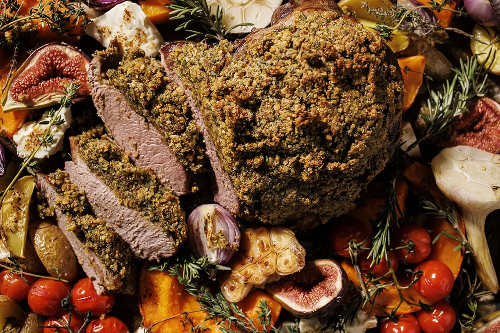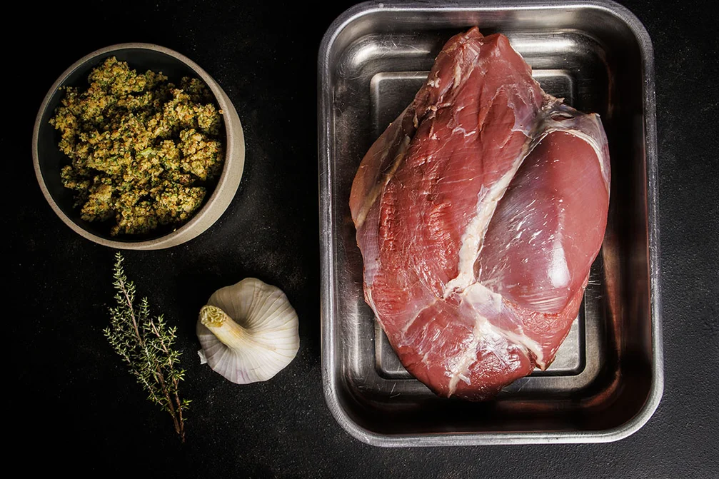 Recipe Leg of venison with herb crust and oven vegetables from the tray