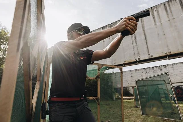 With the pistol, we train drawing from the holster, different starting positions, reloading, sight acquisition and changing targets or finding the different "hold points" on different target arrangements. The same specific aspects are trained with the long guns.