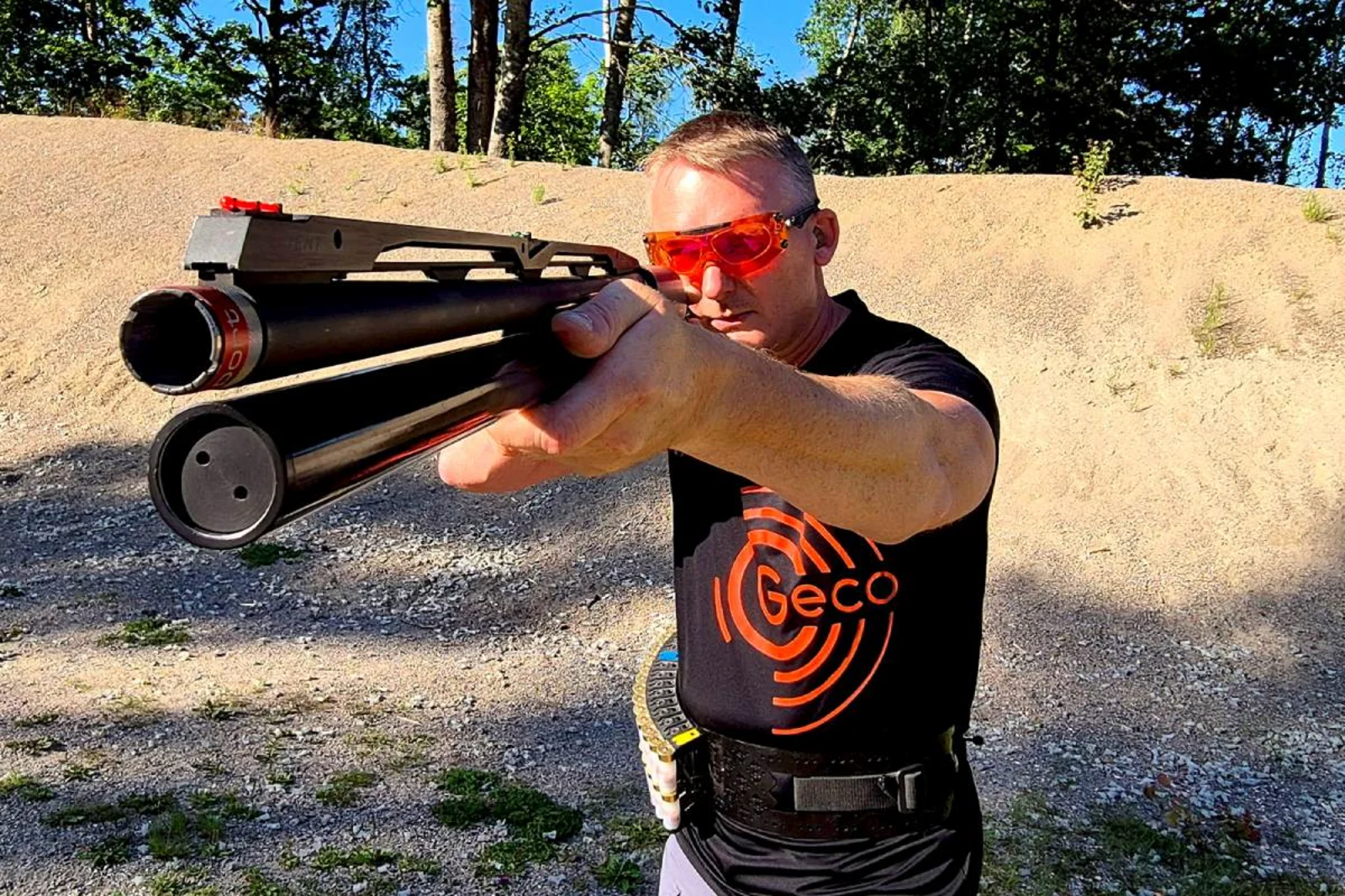 I shot a Benelli M2 and all my wonderful Geco amunition is easy to load from my King Competition Carbon shell holder. To help me see, I have Pilla glasses with different lenses and a sight rib from Tony systems on the gun.
