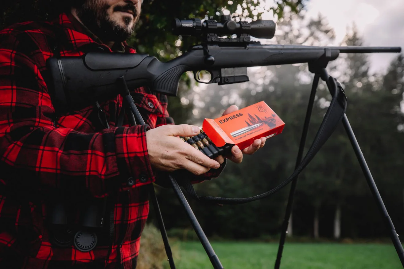 The .222 Rem. calibre enhances the versatility of the EXPRESS line by offering a flat-shooting cartridge that excels in precision shot placement. Its manageable recoil and high velocity make it particularly effective for accurate long-range shots, delivering ethical outcomes and minimising meat damage. This calibre is particularly suited to open-field, highland, or edge-of-forest hunts, where precision over varying distances is essential.