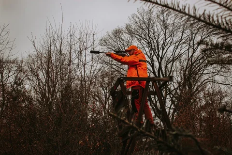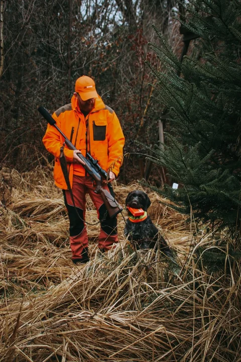 Ma tenue orange haute visibilité tranche nettement avec la forêt hivernale terne. C’est exactement le but. La sécurité est primordiale lors des chasses en battue.