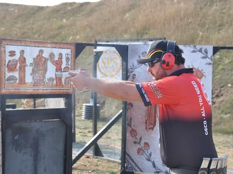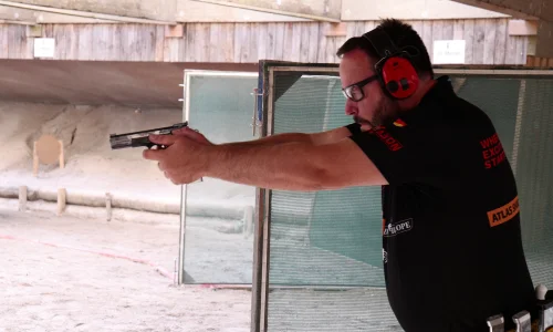 L’allrounder Patrick Kummer in gara al campionato mondiale IPSC 2017 di Chateauroux (Francia), con la sua 1911 nella Classic Division.